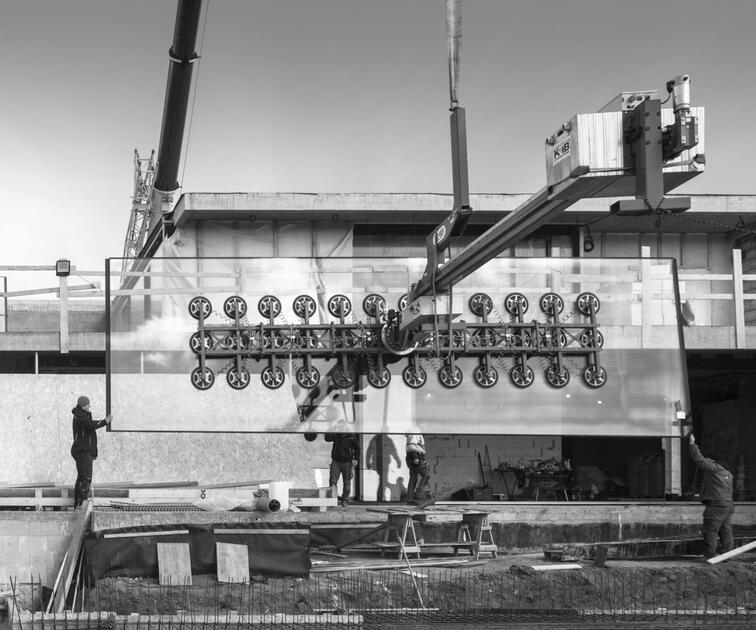 Osazovali jsme sklo velikosti 10x3m a hmotnosti 3tuny.