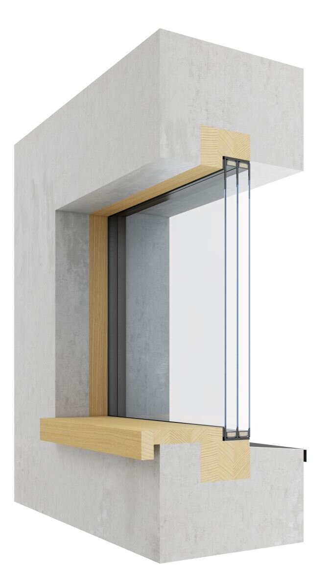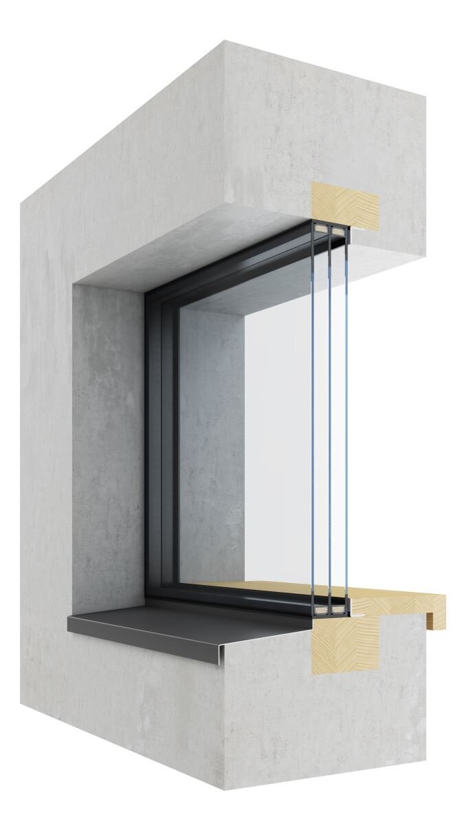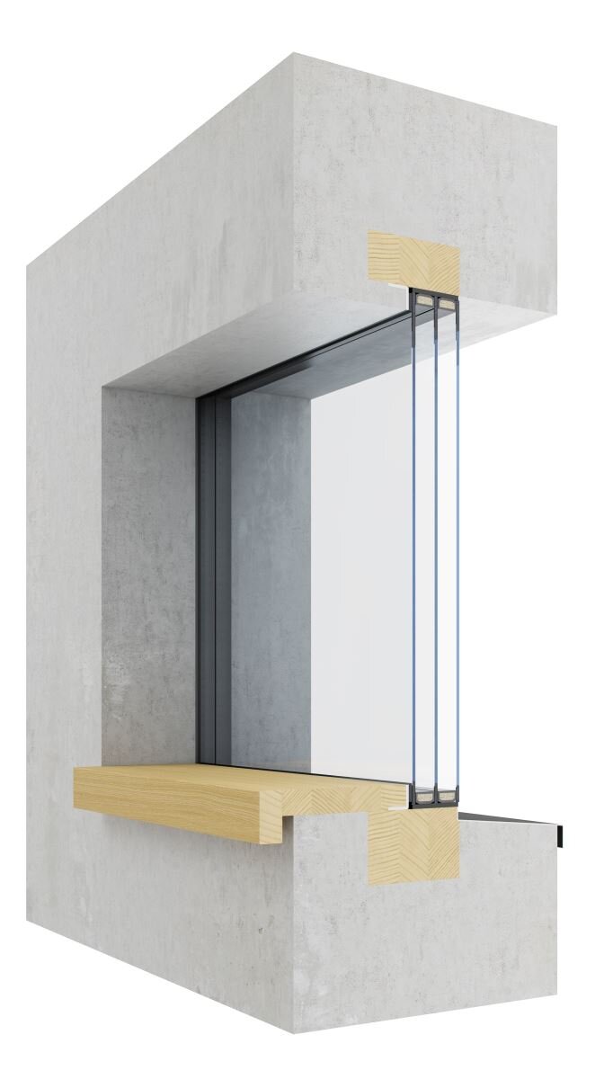 Naše bezrámová okna je možné kombinovat se všemi modermíni okny a vchodovými dveřmi. Z exteriéru je sklo vlepeno do rámu na fasádní dvousložkové tmely. To dovoluje bezproblémové přesklení a zaručuje dokonalé telepně-izolační vlastnosti. Z interiéru je možné řešit dvěma způsoby, buď v provedení Nothing, kde interiérová špaleta probíhá přímo do skla nebo v provedení Wood, kde bezrámové okno lemuje dřevěný rám. Provedení Wood se využívá především v případech, kde není možné materiálem interiérové špalety přetáhnout dřevěný rám (např. stěny z monolitického betonu).