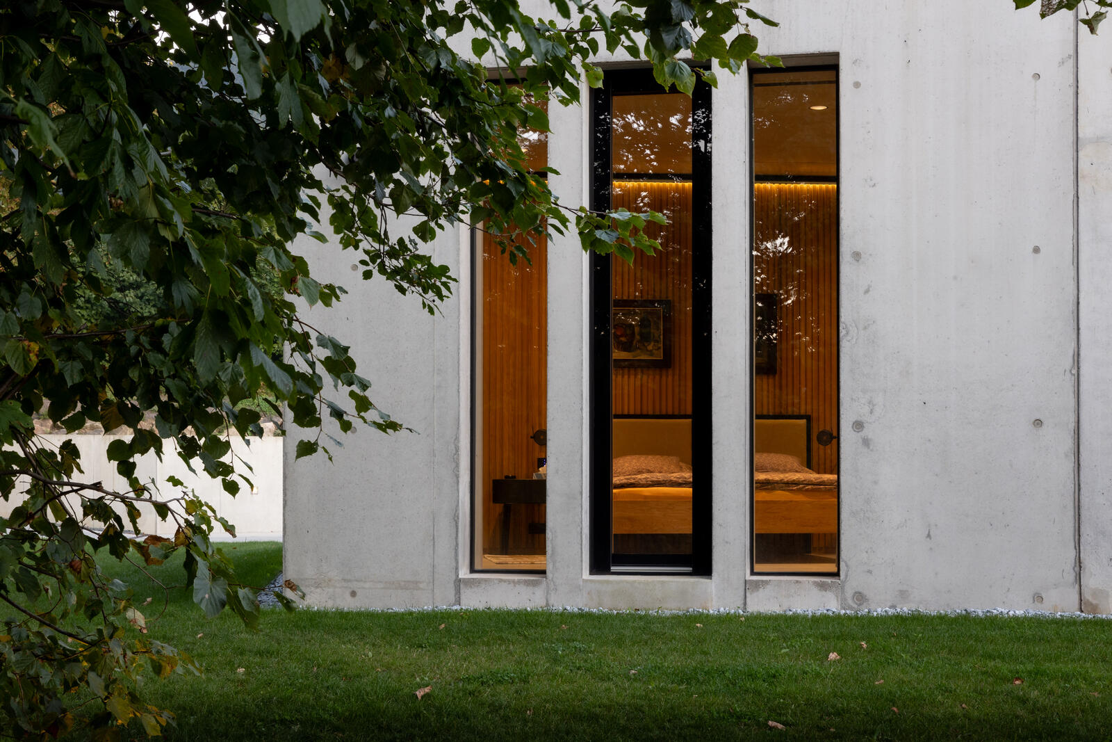 The windows become all-glass walls, creating a clean, minimalist design from the outside.