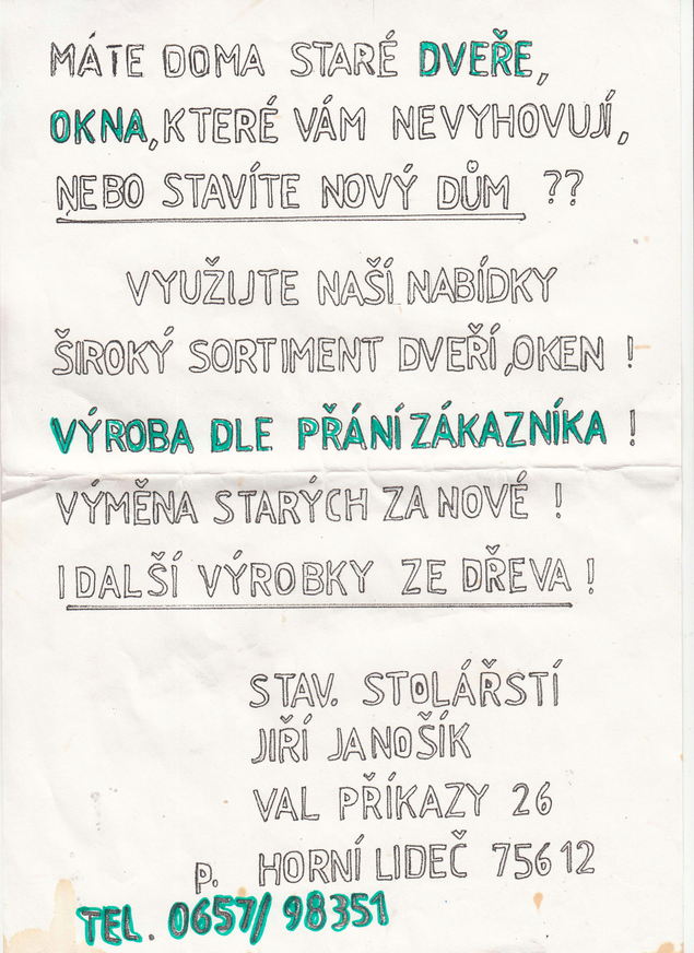 1957 - Another member of the family, Jiří Janošík the Elder, joins the tradition of window and door production.