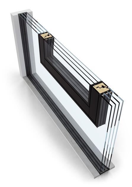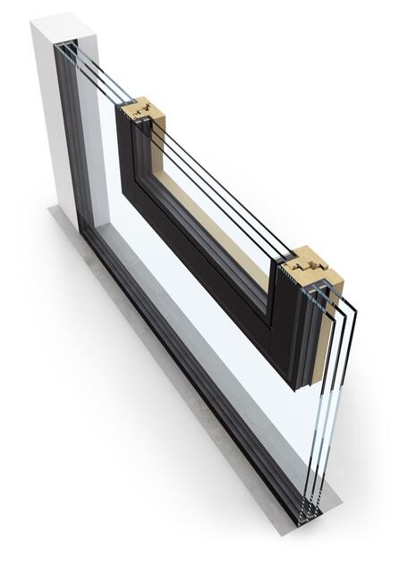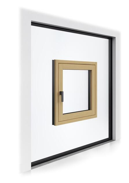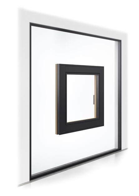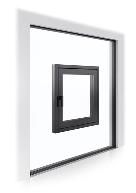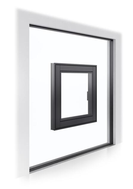 Otvíravé okno levituje v ploše skla. Dokonalosti je dosaženo, když okno zarámuje v dáli středobod plátna obrazu.