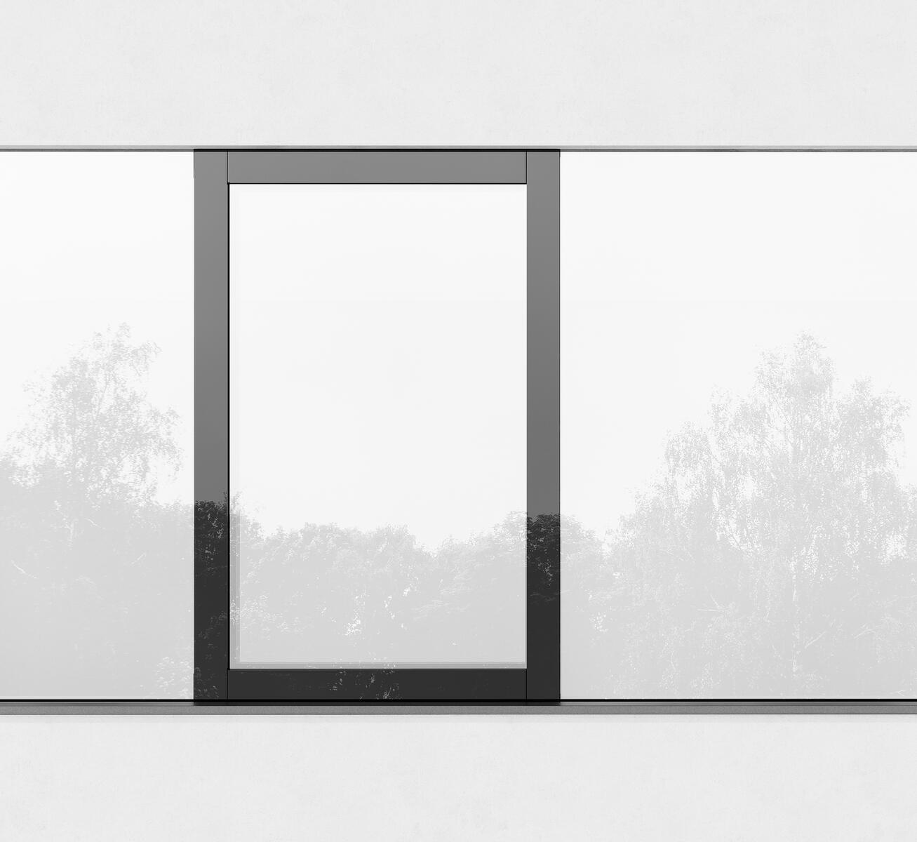 Okna a dveře jsou v dřevěným minimalistickém designu.