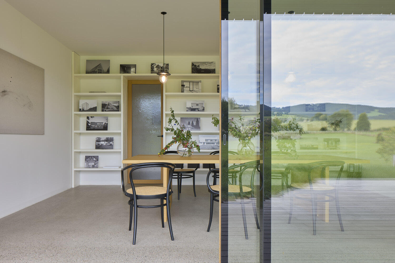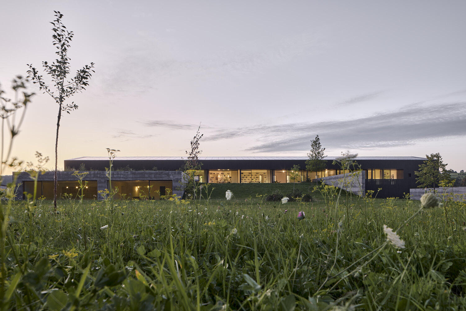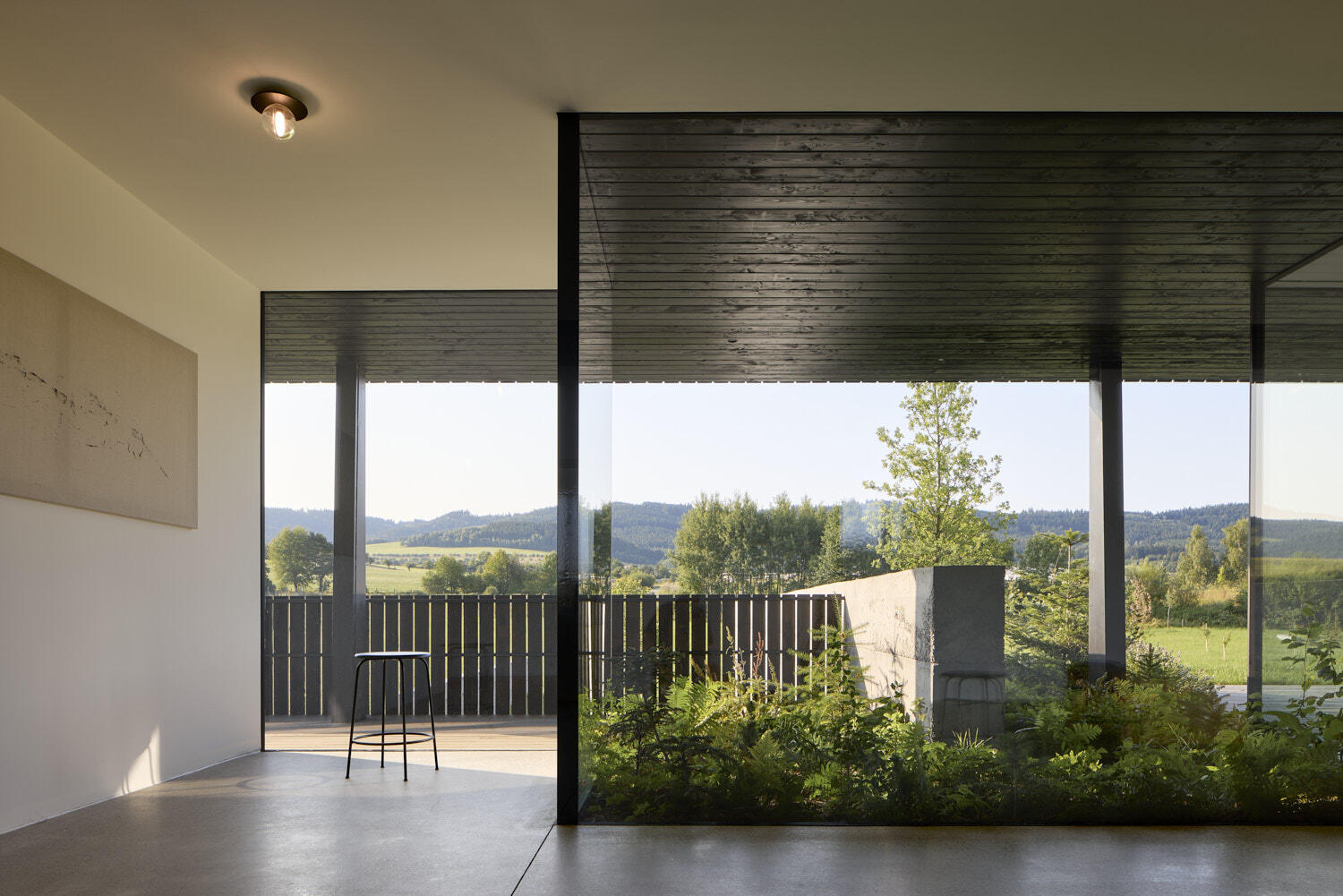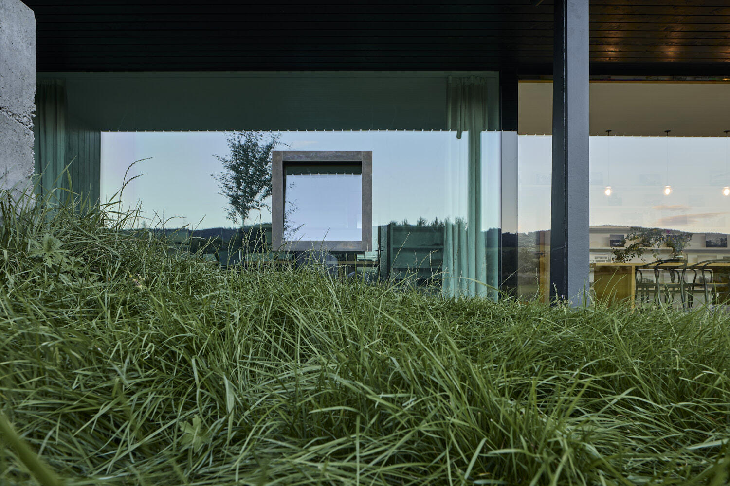 Aby vyzněly pravé podstaty oken, dostal dům náruč, která přivádí louku a propojuje interiér a zahradu v jeden prostor. Otevřel se dalekým výhledům i síle atmosfér zvenčí.