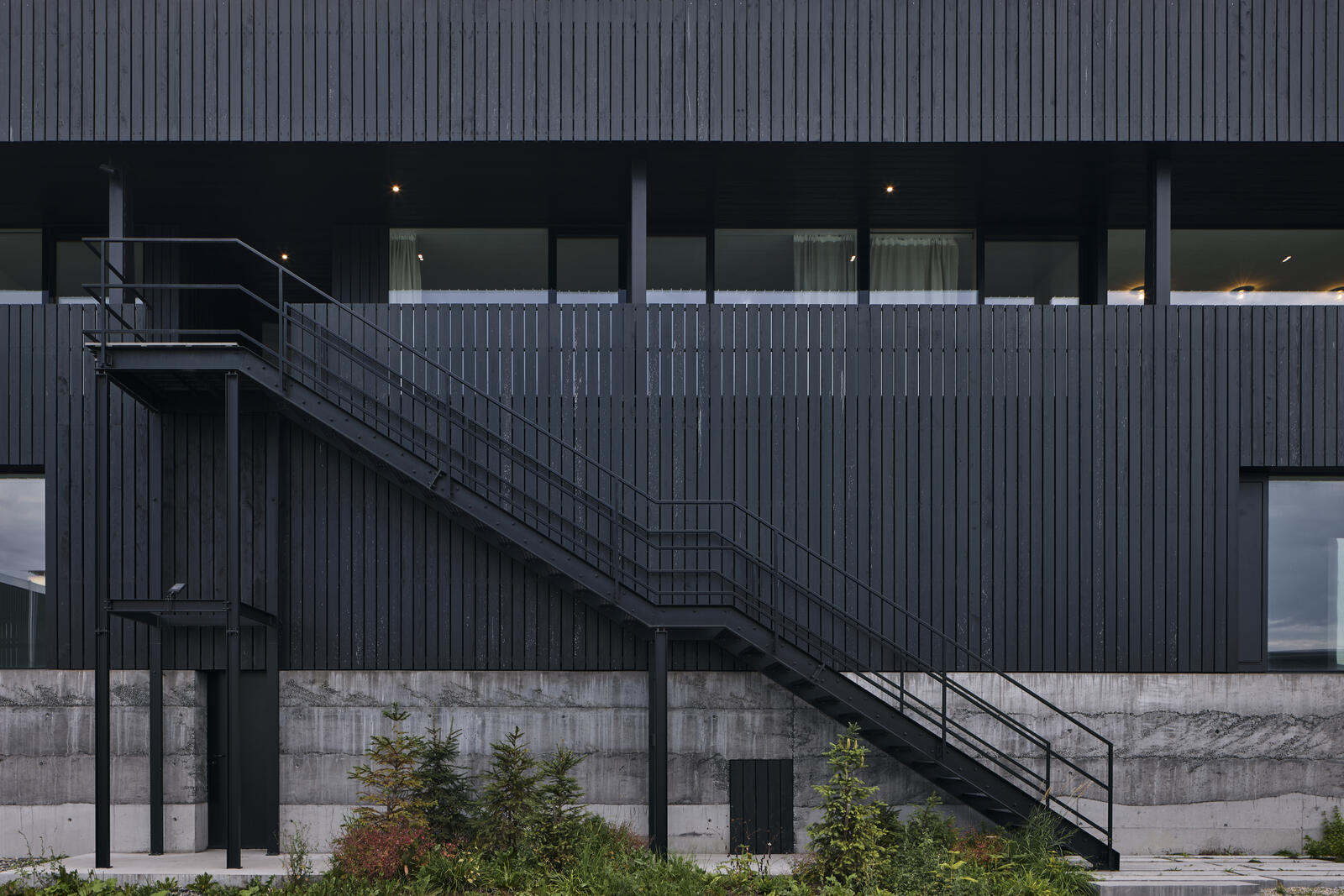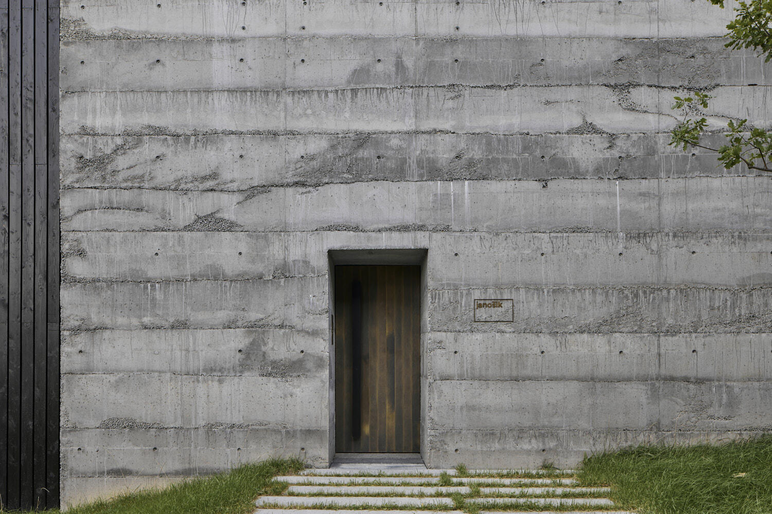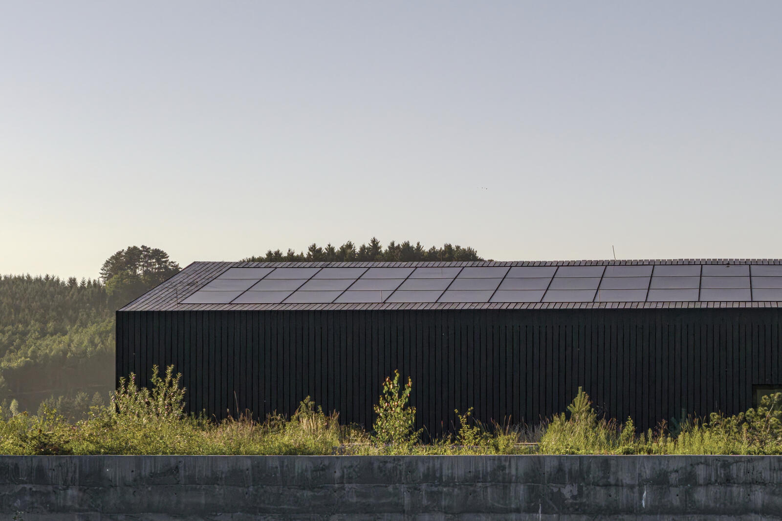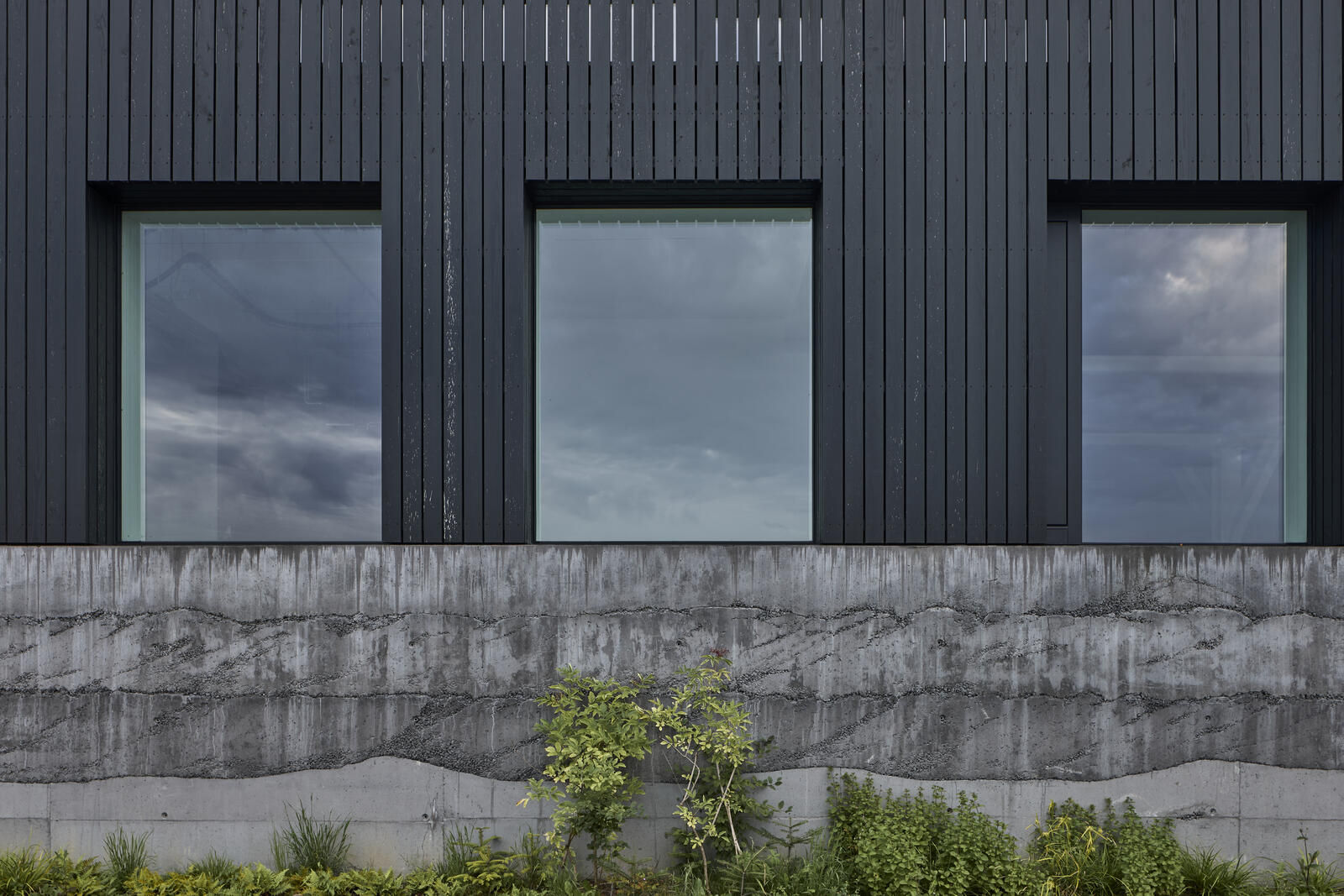 Architekturu a atmosféru domu formovaly myšlenky o dobrých oknech. I chtění, aby dům nerušil v krajině. Je tak drsnější a tmavší navenek, střídmý a klidný uvnitř. Hmota je prolnutí mezi dvěma objemy. Původní halou s tradičním tvaroslovím se sedlovou střechou a novou betonovou náručí, která otevírá dům směrem do krajiny.