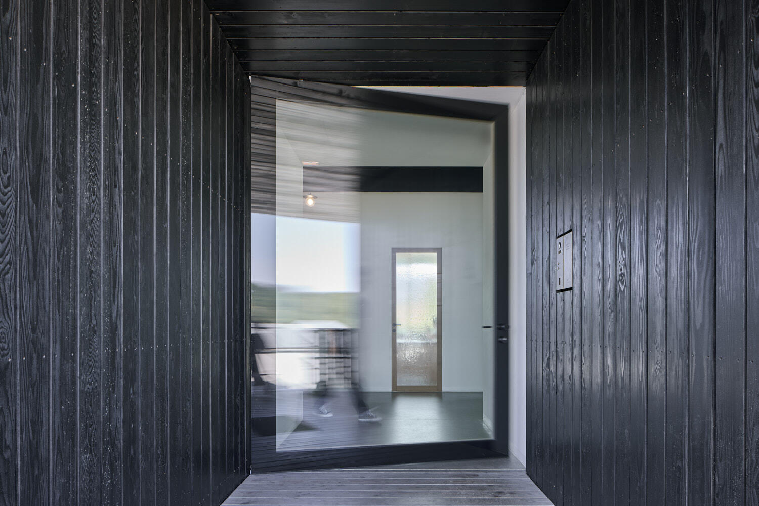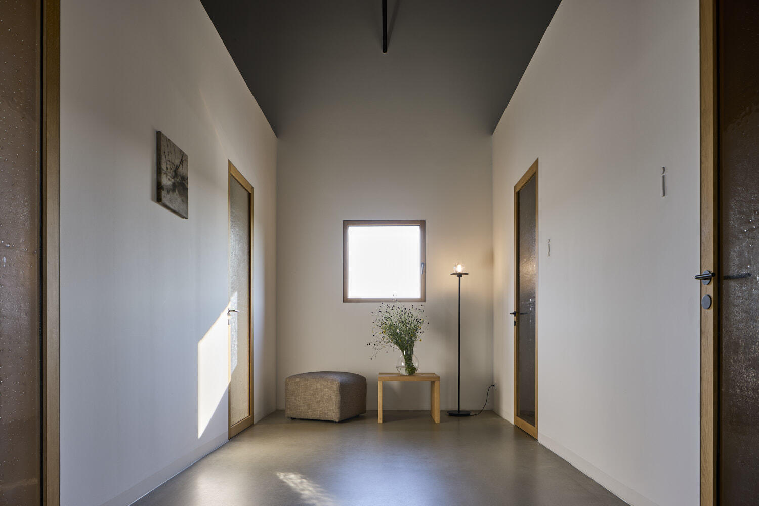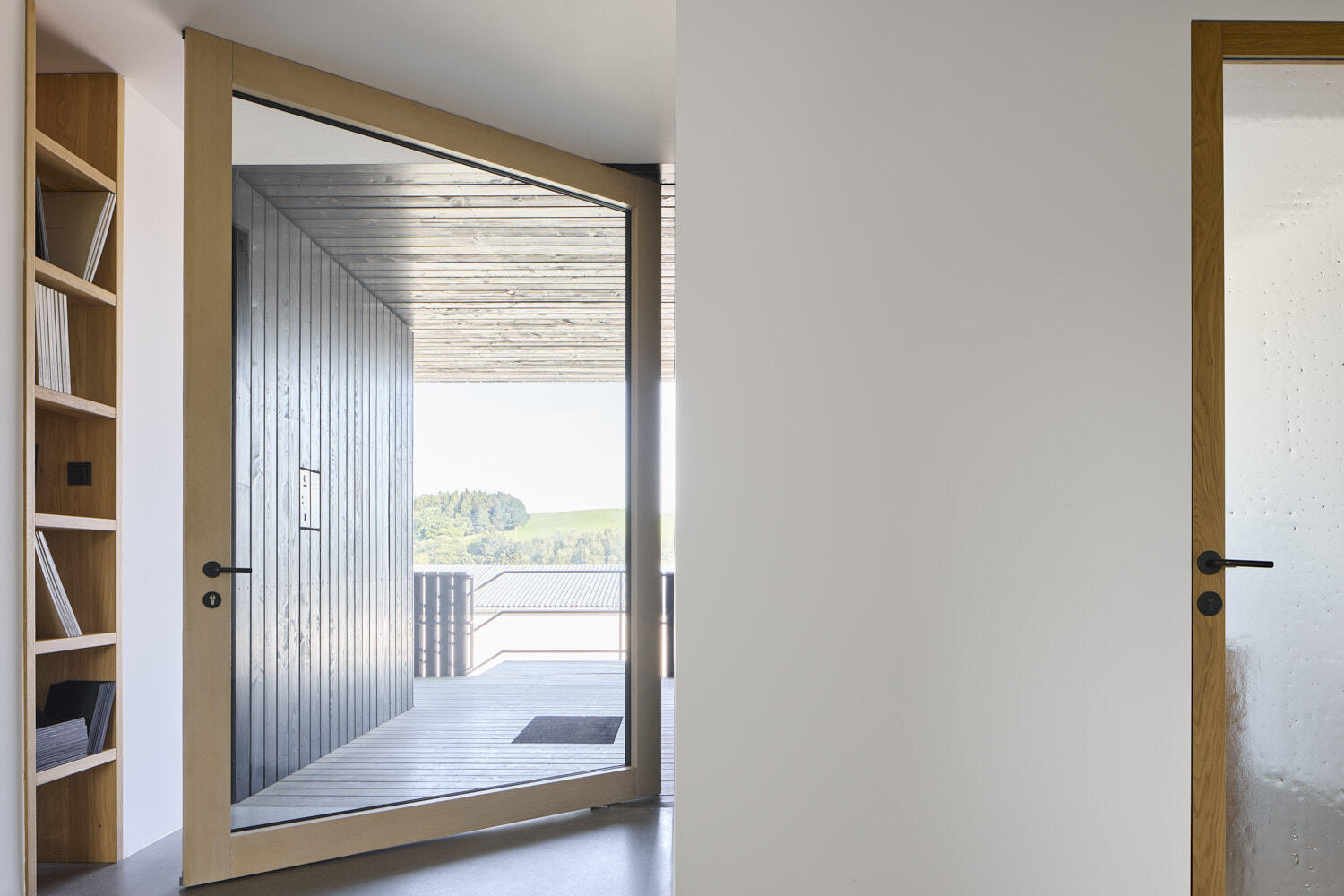 Místo protkáné rozmanitým řešením oken, dveří. Jako představení možností i experiment s formou a funkcí. Od posuvných velkoformátových skleněných stěn po menší, specifická okna. V různých materiálech, detailech. Rovněž i provedení nevšední. Posuvná okna, která se vznášejí na energetickém poli, což umožňuje odsunutí i abnormálních velikostí. Pivotové dveře. Sedací okno, ve kterém se sklo odsune a ocitáte se v zahradě. Okno levitující uprostřed skla. Okna a dveře obložená mosazí nebo cortenem.