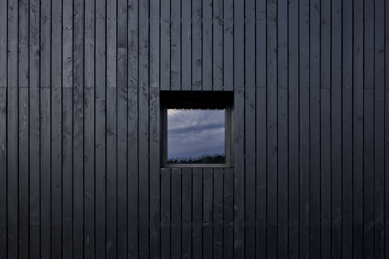 Architekturu a atmosféru domu formovaly myšlenky o dobrých oknech. I chtění, aby dům nerušil v krajině. Je tak drsnější a tmavší navenek, střídmý a klidný uvnitř. Hmota je prolnutí mezi dvěma objemy. Původní halou s tradičním tvaroslovím se sedlovou střechou a novou betonovou náručí, která otevírá dům směrem do krajiny.