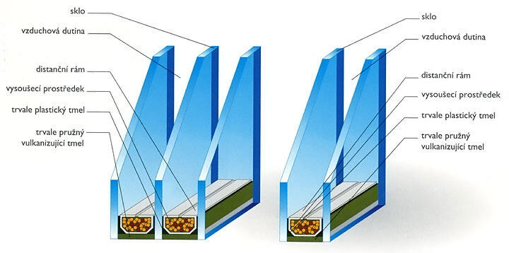 Pro zaskleníoken a dveří se používají izolační dvojskla nebo trojskla. Izolační skla jsou tvořena dvěma nebo třemi tabulemi plochého skla, které jsou odsazeny distančními rámečky. Tato skla mají na povrchu nanesenu speciální vrstvu z oxidů kovů, odrážející tepelnou energii zpět do místnosti a zabraňující tak jejímu úniku. Tím je dosaženo výrazného snížení hodnoty součinitele prostupu tepla "Ug". Pro zvýšení tepelně-izolačních vlastností je dutina dvojskla nebo trojskla vyplněna inertním plynem – krypton/argon. Průhlednost skla přitom zůstává plně zachována.